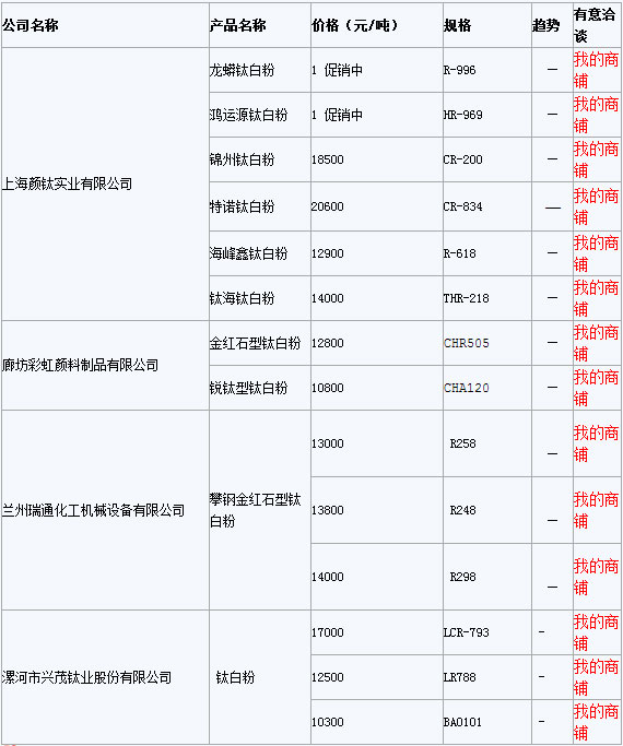 【中國涂料采購網(wǎng)】2月5日,慧聰涂料原料網(wǎng)為廣大用戶匯總了鈦白粉報價,上海顏鈦實業(yè)有限公司鈦白粉出廠價格基本持穩(wěn),廊坊彩虹顏料制品有限公司鈦白粉含稅出廠價格保持不變。詳情見下面表格數(shù)據(jù)。