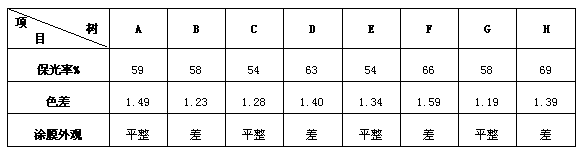因為樹脂是粉末涂料的主要成膜物質(zhì),是決定粉末涂料性質(zhì)和涂膜性能的最主要成分,所以樹脂的選擇至關(guān)重要。選取市面上大型廠家常用的鋁型材用粉末涂料聚酯樹脂,使用同一配方結(jié)構(gòu)和相同制作工藝分別制粉進(jìn)行300小時耐老化試驗以及涂膜外觀比較,結(jié)果如表1所示。