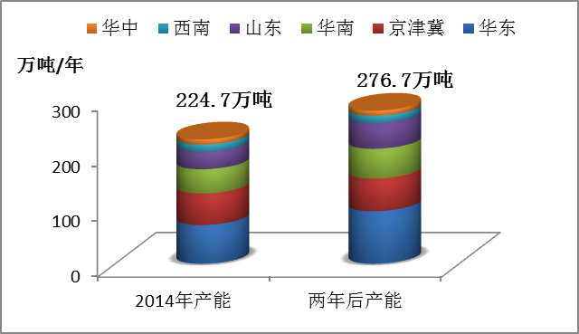 對(duì)于預(yù)測(cè)丙烯酸乳液的需求增速,我們主要來(lái)看一下占其下游需求總量近70%的建筑涂料的未來(lái)發(fā)展,至2020年我國(guó)城鎮(zhèn)建筑涂料的需求總量預(yù)計(jì)能達(dá)到724.71萬(wàn)噸,進(jìn)而得出對(duì)丙烯酸乳液的需求量在131.4萬(wàn)噸,所以即使加上其他下游的總需求量也不及我國(guó)目前的總產(chǎn)能224.7萬(wàn)噸,所以未來(lái)丙烯酸乳液的需求增速較供應(yīng)增速明顯落后。